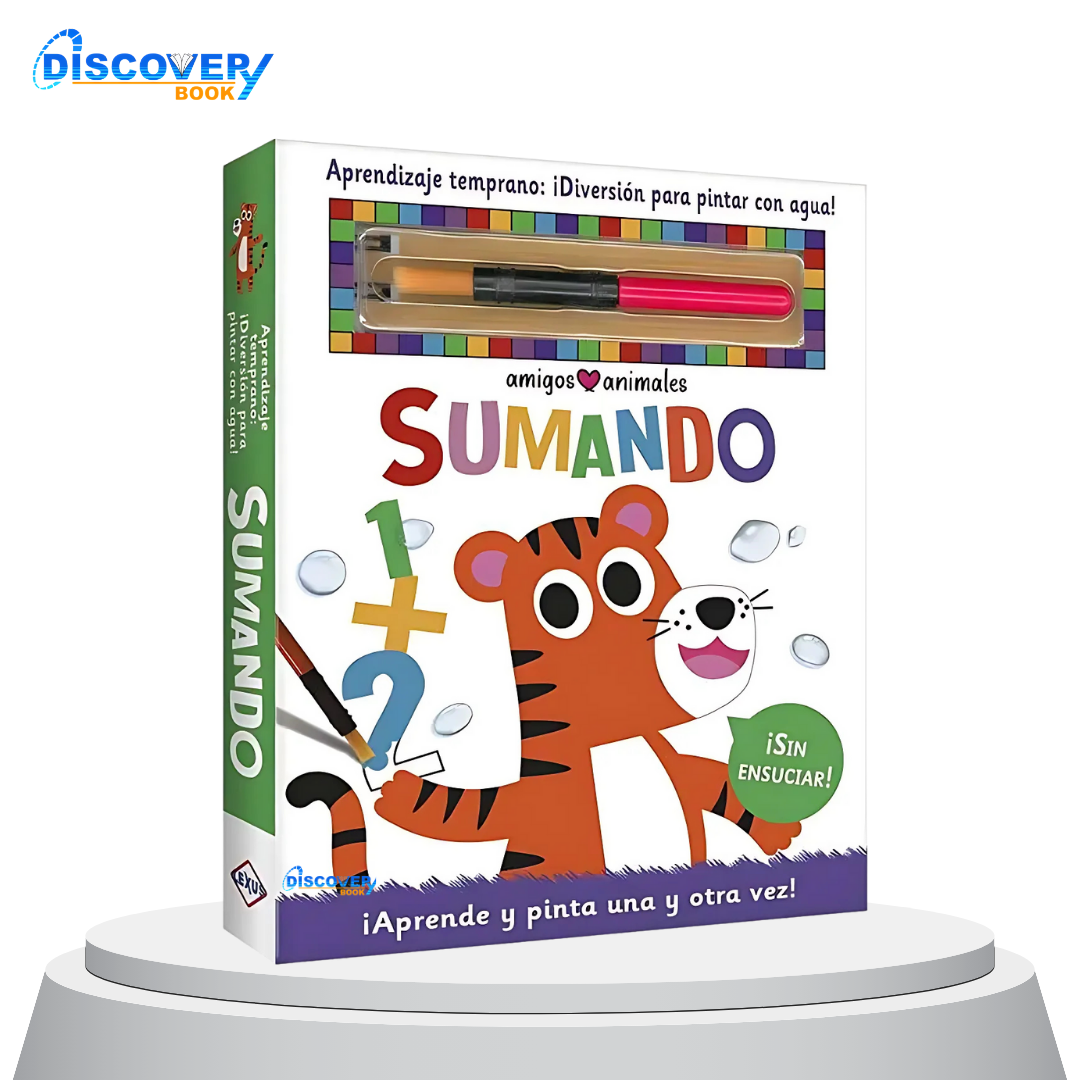 En el libro Sumando, podrás pintar, trazar y aprender a sumar en sus páginas reutilizables. Utiliza el pincel para pintar los números e imágenes con agua, descubre cómo los colores ocultos aparecerán mágicamente. ¡Cuándo la página esté seca, el color desaparecerá, para que puedas pintar y sumar una y otra vez!