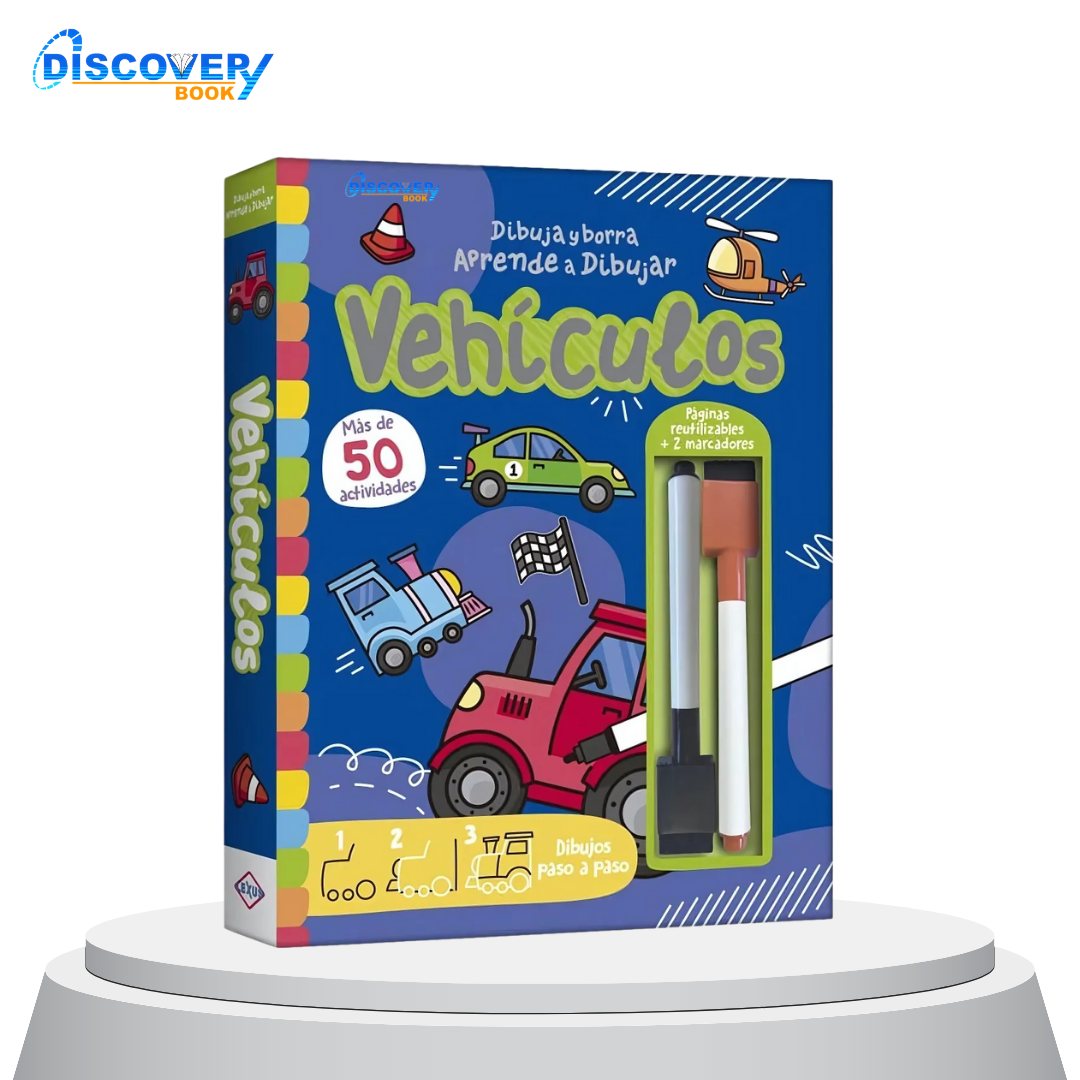 ¡Aprende a dibujar con más de 50 actividades! Hay más de 30 Vehículos diferentes para dibujar con sencillas instrucciones paso a paso. Crea asombrosas obras de arte dibujando con marcadores borrables sobre las escenas reutilizables. ¡Cuando termines, simplemente borra la imagen y dibuja una y otra vez!